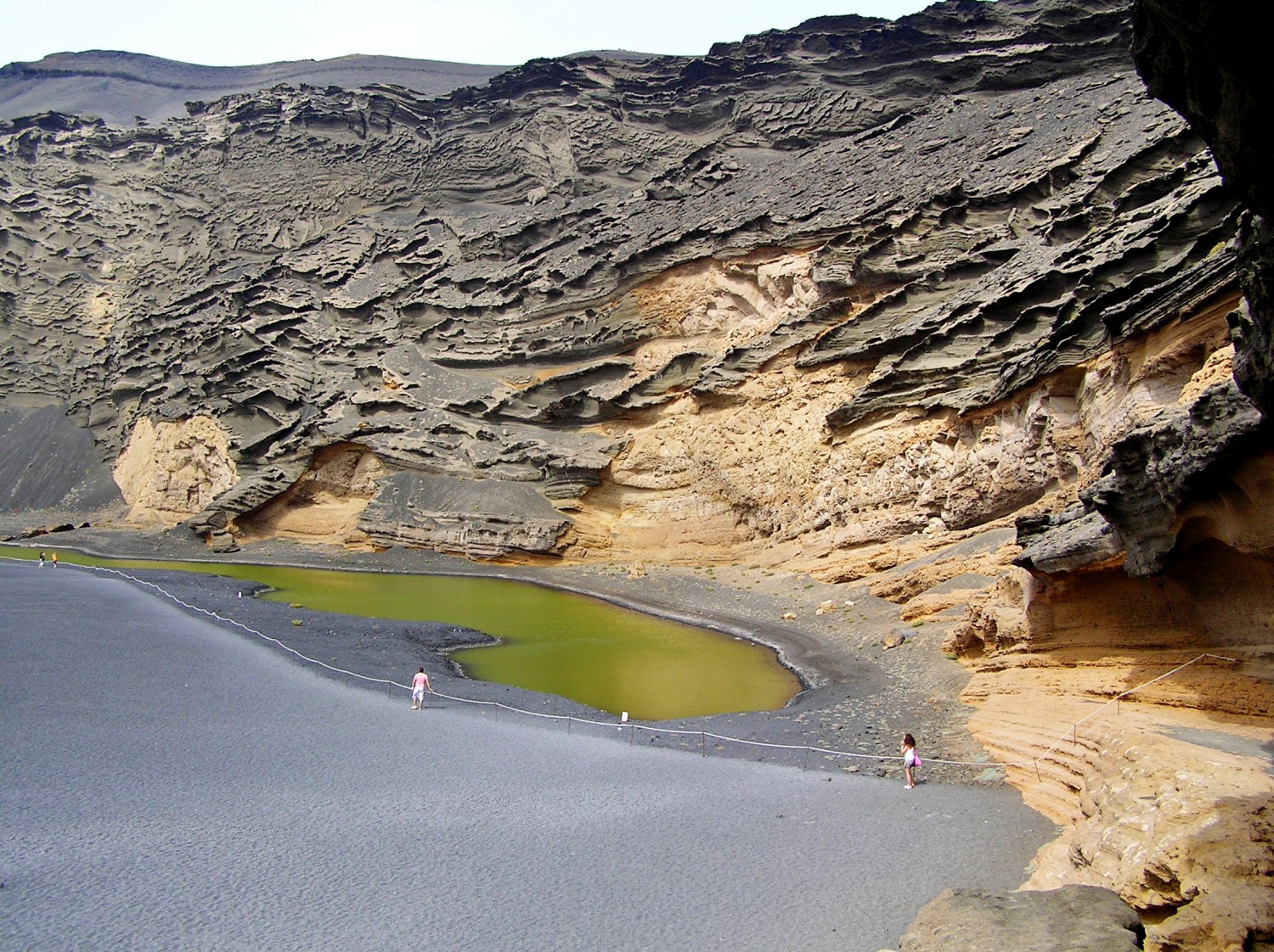 5. Charco Los Clicos: laguna verde e spiaggia nera L’isola di Lanzarote è nota anche per alcune pietre verdi semipreziose, che qui chiamano “olivine” e con cui gli artigiani locali realizzano gioielli. Su questa spiaggia, in mezzo alla lava, se ne possono trovare molte, anche se quello che caratterizza questo luogo è la cosiddetta Laguna Verde o Charco Los Clicos. Si tratta di una piccola laguna, le cui acque filtrano dal mare, che si è formata ai piedi della scogliera vulcanica, in seguito alla formazione di un cratere eroso dal mare, durante le eruzioni vulcaniche del 1700. La laguna è profonda circa otto metri e ha un colore smeraldo intenso che risalta ancora di più all’interno della spiaggia lavica nera.