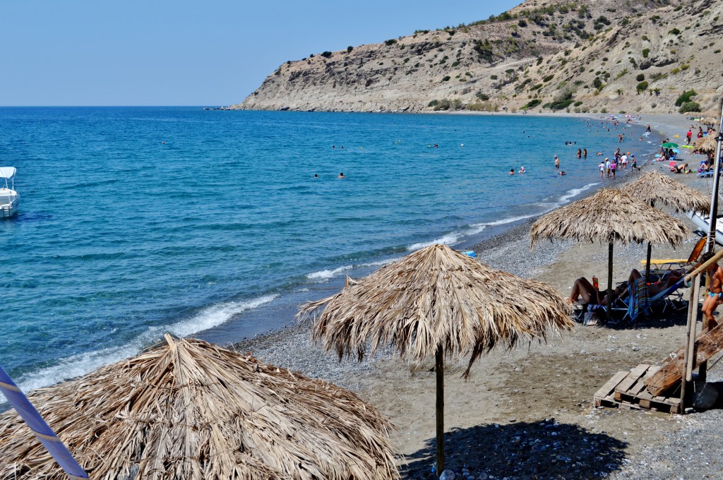 Spiaggia attrezzata in una zona non troppo conosciuta del sud di Creta, che però sta diventando meta sempre più frequentata dai turisti.