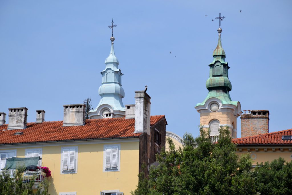 Anche se siete soltanto di passaggio, non trascurate di fare una passeggiata nel centro storico di Lovran, racchiuso all’interno di un piccolo perimetro, in passato completamente murato. Oggi sopravvive la torre civica restaurata e una delle porte, che incornicia la piazzetta centrale del paese, a due passi dalla chiesa di San Giorgio. Vale la pena perdersi nei vicoli per ammirare i balconi fioriti e le case di pietra restaurate, prima di attraversare la statale e affacciarsi sul mare.