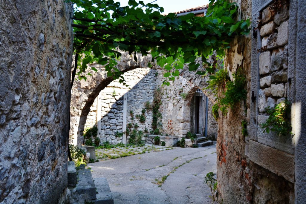 Quando vi siete stancati del mare, potete proseguire la strada che si inerpica verso l’interno e fare un giro attraverso alcuni tra i più sperduti borghi di questo tratto di Istria. Io sono arrivata fino a Skitača, un villaggio rurale formato da un pugno di case di pietra, molte delle quali abbandonate, e un cimitero.