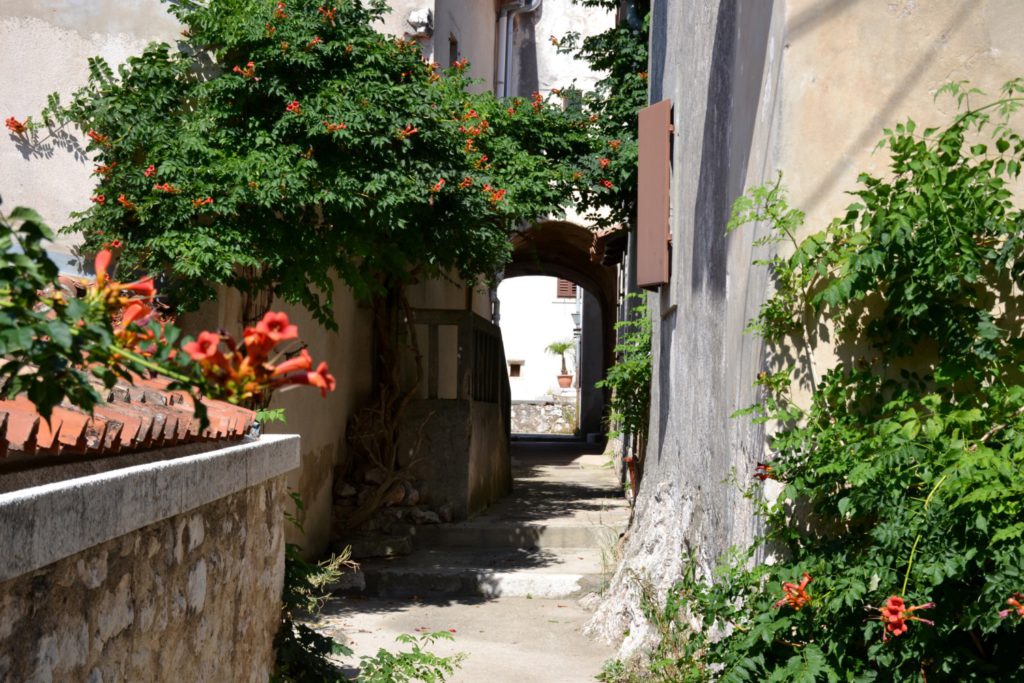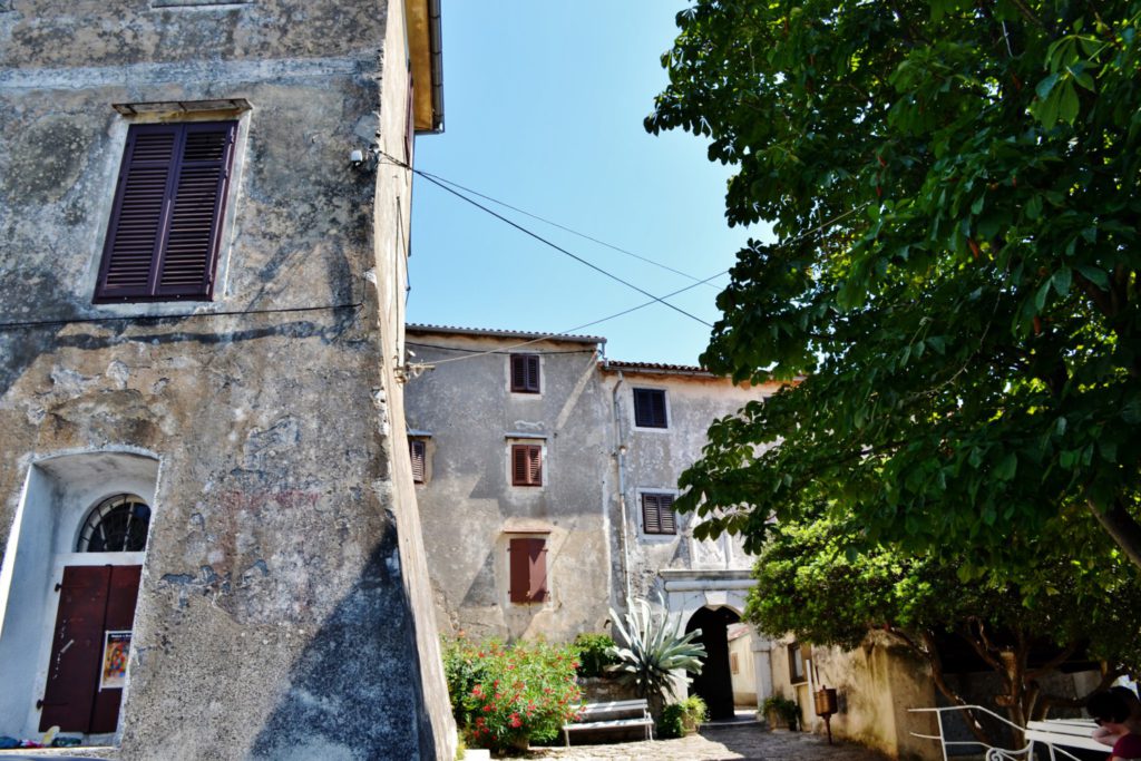 Parcheggio dall’altro lato della statale, proprio di fronte alla zona di sosta attrezzata con panchine e ombreggiata dagli alberi da cui si accede a piedi alla parte antica del centro. Sono le 10 del mattino di una giornata di luglio e tutti sono già al mare. “Dober dan”: faccio un cenno di saluto all’anziana signora seduta su una sedia fuori dalla porta di casa sua e lei ricambia. E poi mi accingo ad esplorare la parte antica di Plomin, arroccata su un colle di 148 metri che sovrasta il fiordo: il punto migliore da cui ammirarlo è dal sagrati della chiesa, oppure da un belvedere che si raggiunge in auto, proseguendo da Plomin verso Brsec.