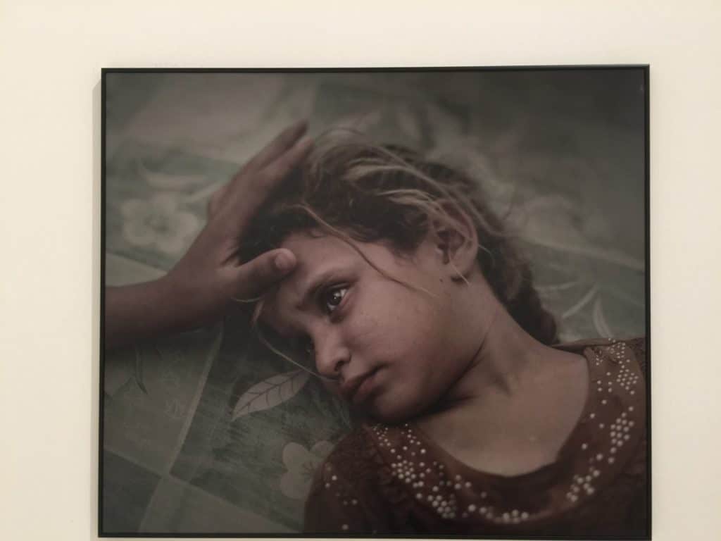 Il primo piano mostra una bambina di 5 anni, Maha, mentre viene accarezzata dalla mamma nel campo profughi di Debaga, nella parte nord-orientale dell’Iraq. Lo sguardo della bambina è triste e guarda un punto indefinito consapevole dell’incertezza del proprio futuro e di quello della sua famiglia. Maha e la sua famiglia erano fuggiti da una città 160 chilometri a sud di Mosul. La città di Hawija costituiva una delle ultime roccaforti dell’Isis quando l’esercito iracheno ha riconquistato il territorio avanzando verso Mosul. Circa 400.000 civili rimasero così bloccati senza rifornimenti né cibo, in quanto l’Isis impediva l’accesso degli aiuti umanitari.